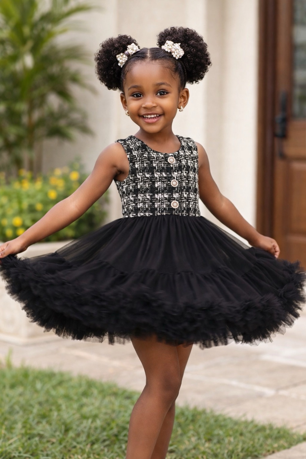 Let your little one step out in timeless style with the Sweet London Plaid Tweed Dress! Designed in a soft black plaid tweed, this sleeveless dress brings a touch of London charm to any occasion. It’s fully lined for all-day comfort, and the classic pattern makes it easy to dress up or down.